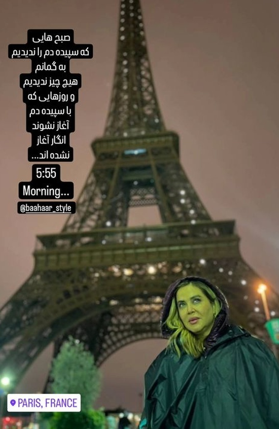 تیپ و استایل «بهاره رهنما» 50 ساله را در کنار برج ایفل پاریس مشاهده می کنید.