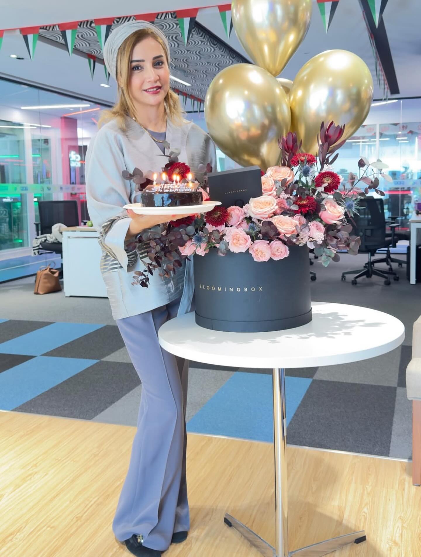 تصویری از جشن تولد ۴۸ سالگی شبنم قلی خانی در محل کارش در دبی را ببینید.