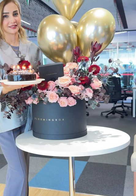 تصویری از جشن تولد ۴۸ سالگی شبنم قلی خانی در محل کارش در دبی را ببینید.