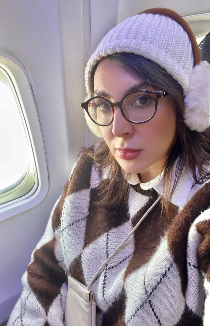 لیلا بلوکات با تیپ زمستانی جذاب در هواپیما دیده شد.
