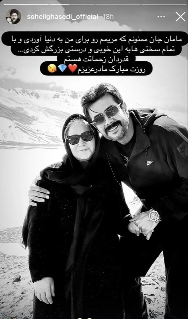 سهیل قاصدی با انتشار یک پیام ویژه، روز مادر را گرامی داشت و به مادر همسرش، مریم مومن، ادای احترام کرد. او با بیان جملاتی احساسی، از محبت مادری تقدیر کرده و آرزوی داشتن چنین دامادانی برای همه مادران را مطرح کرد. در این پیام چنین آمده است: