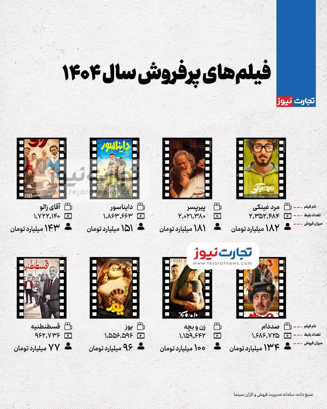 لیست فیلم های پر فروش سال 1404 را در ادامه میبینید.
