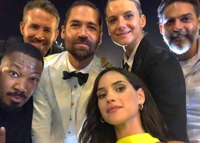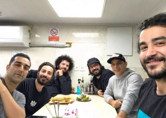 سلفی پیمان معادی در کنار بازیگران فیلم شش زیرزمینی