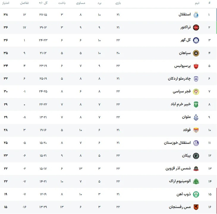جدول لیگ برتر