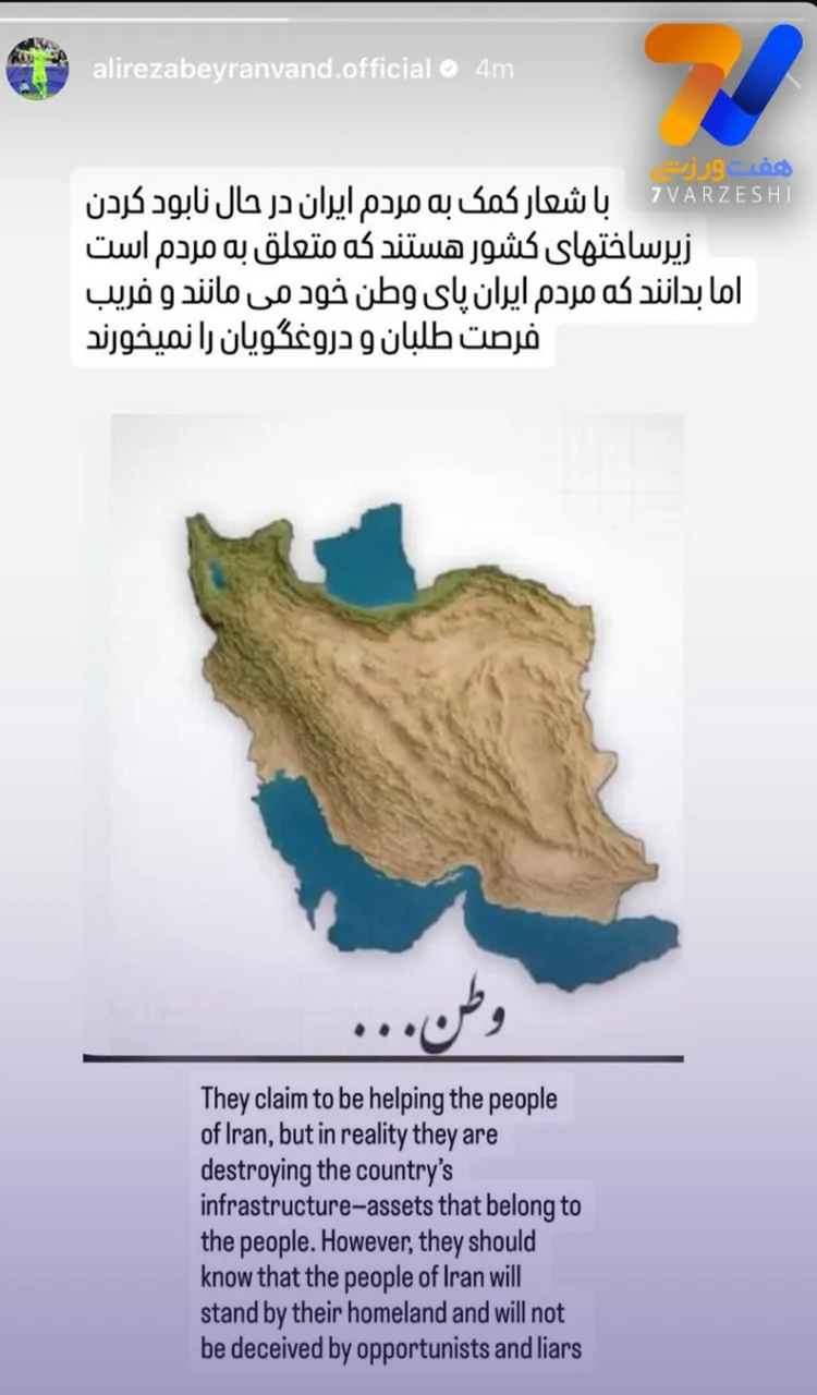استوری علیرضا بیرانوند سنگربان باشگاه تراکتور و تیم ملی را ببینید.