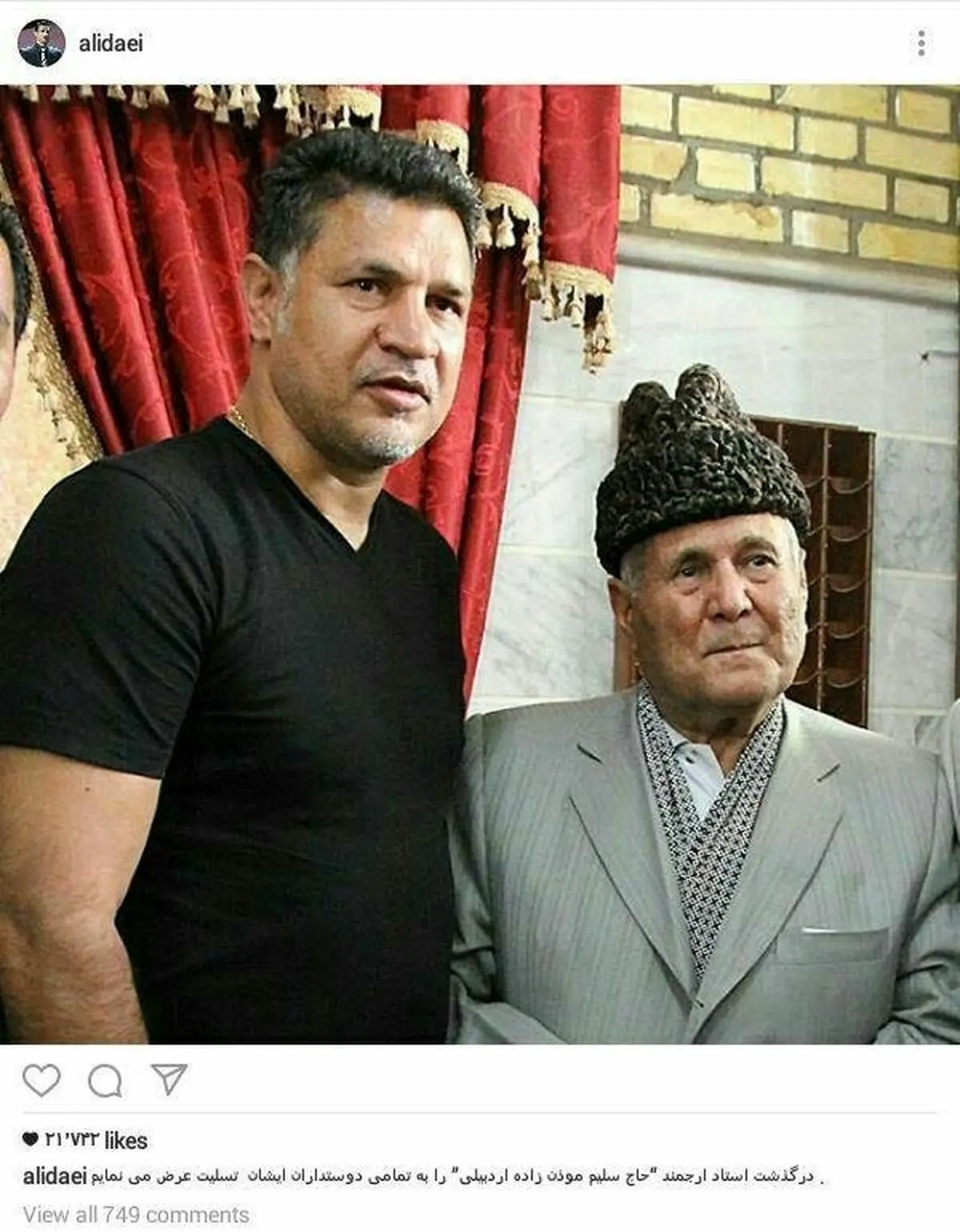 دایی زیر این عکس نوشت: درگذشت استاد ارجمند حاج سلیم موذن زاده اردبیلی را به تمامی دوستداران ایشان تسلیت عرض می نمایم.