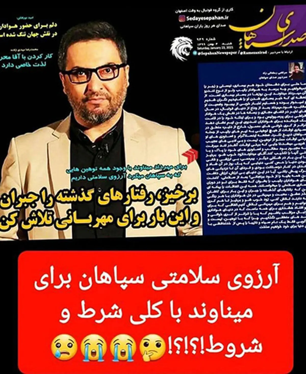 برترینها: باشگاه فوتبال سپاهان برای پیشکسوت پرسپولیس آرزوی سلامتی کرد اما با شرط و شروط.