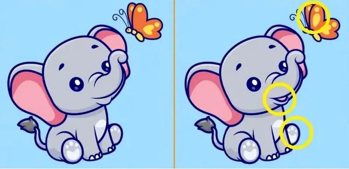 در این بازی «تفاوتها را پیدا کنید»، از شما خواسته شده بود که در عرض ۷ ثانیه، ۳ تفاوت بین دو تصویر را پیدا کنید. تفاوتها به شرح زیر است: