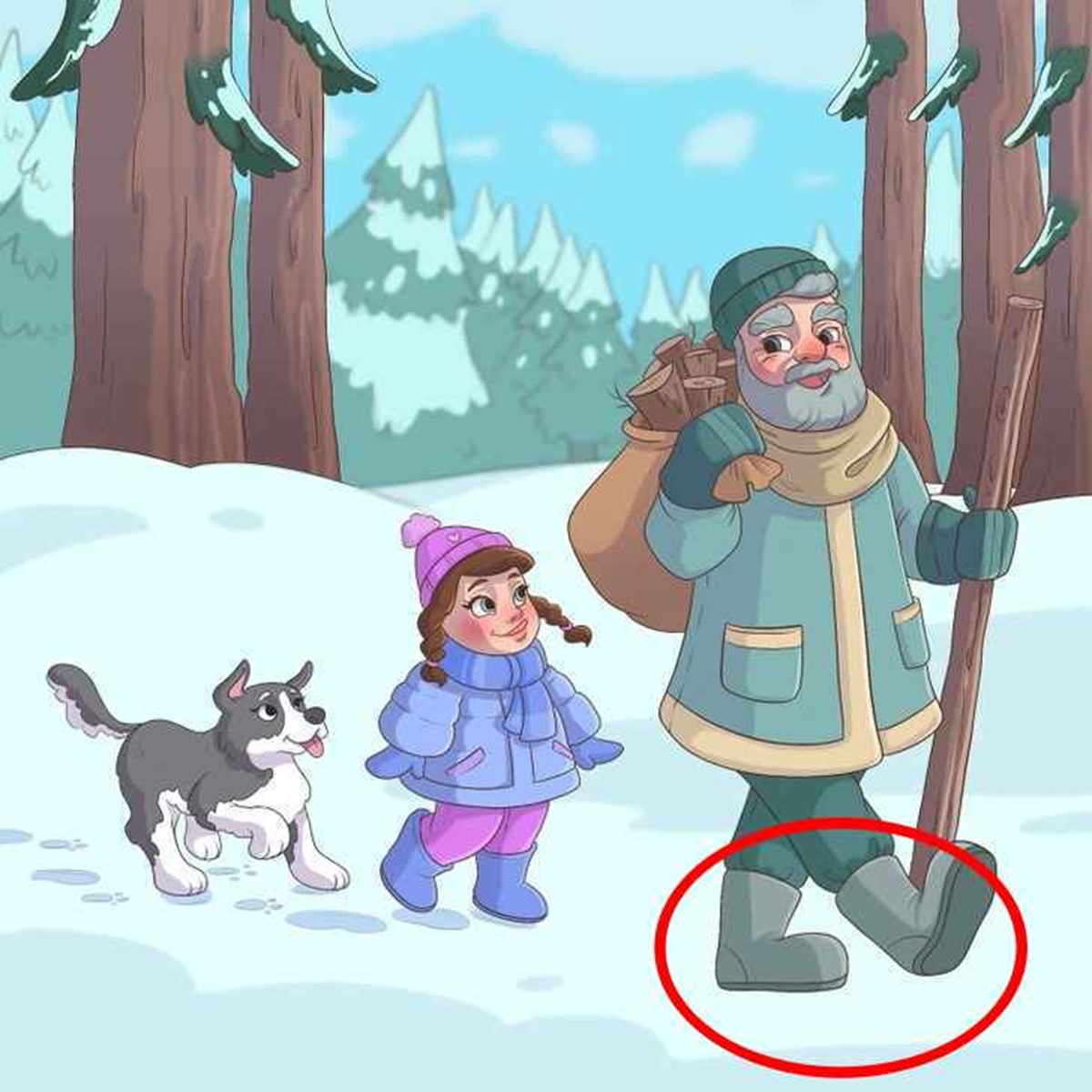در حالی که رد پای دختر و سگ روی برف کاملاً مشخص است، هیچ ردپایی از مرد روی برف دیده نمیشود این ناهماهنگی با منطق صحنه، اشتباه اصلی تصویر محسوب میشود.