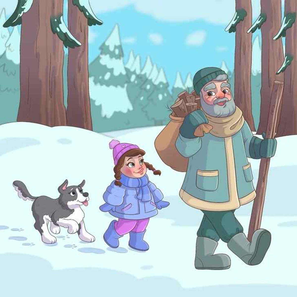 آنها در حال قدم زدن در یک جنگل پوشیده از برف هستند.