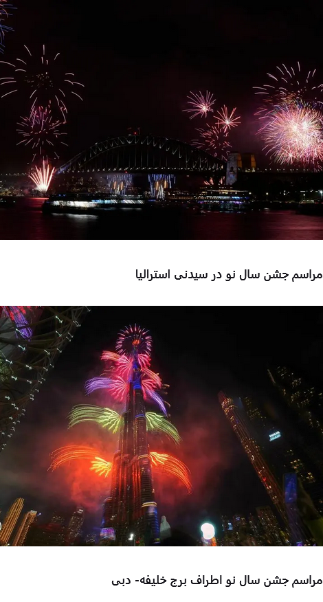 به نقل از الجزیره، نخستین شهرهایی که آغاز سال نوی میلادی را جشن گرفتند، نیمه شب را با آتش بازی در کنار سواحل خود آغاز کردند و جمعیت فراوانی نیز برای تماشا گرد آمدند.