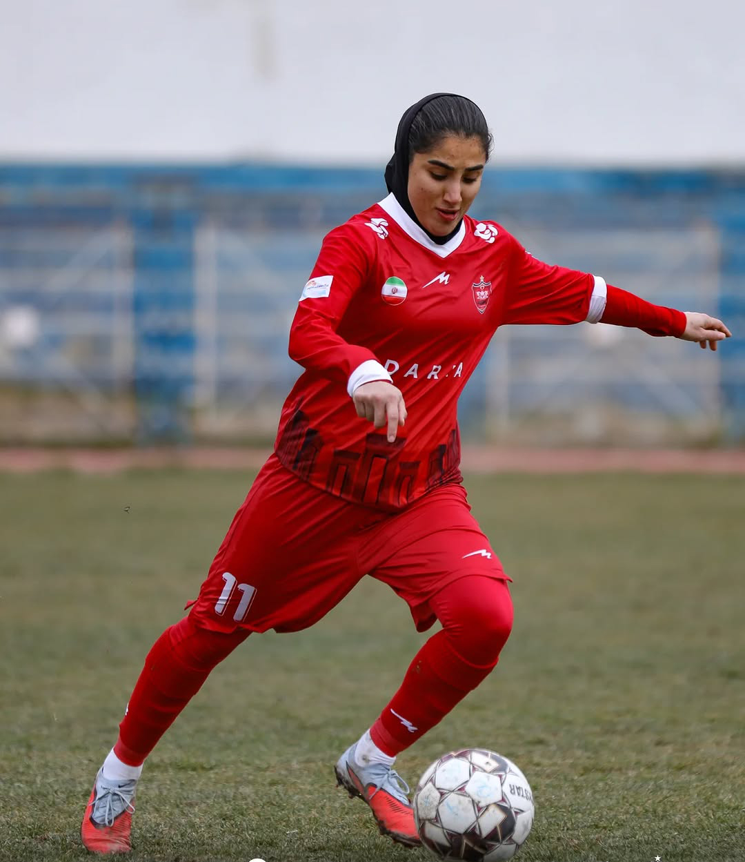 قاب دوم متعلق است به خانم زهرا احمدیزاده مدافع خوش استایل تیم دختران پرسپولیس و تیم ملی فوتبال زنان. بازیکن سابق تیم سپاهان و مدافع وسط این روزهای پرسپولیس، توانایی بازی در پستهای دیگر را هم دارد. این عکس در حاشیه دیدار پالایش گاز ایلام – پرسپولیس ثبت شده است.