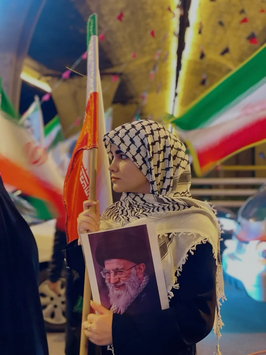 یکی چفیه را برای پوشش موهای خود انتخاب کرده و در یک دستش عکس رهبر شهید را گرفته و در دست دیگرش پرچم ایران عزیز را... آن یکی پوشش فرق میکند. از این دخترهای پرشر و شور است ظاهرا... موهایش را بلوند و فر کرده و کلاهی هم روی سرش گذاشته و پرچم ایران را روی دوشش انداخته و خودش را این شکلی برای حضور در میدان آراسته. میبینید، با دو پوشش کاملا متضاد در خیابان حضور پیدا کردهاند و پای وطن ایستادهاند. اینها دختران باشرف ایران هستند...