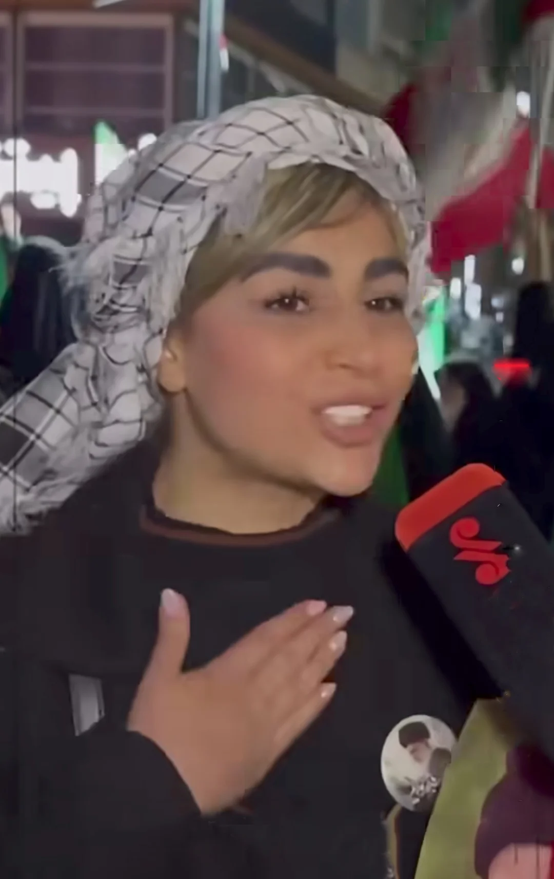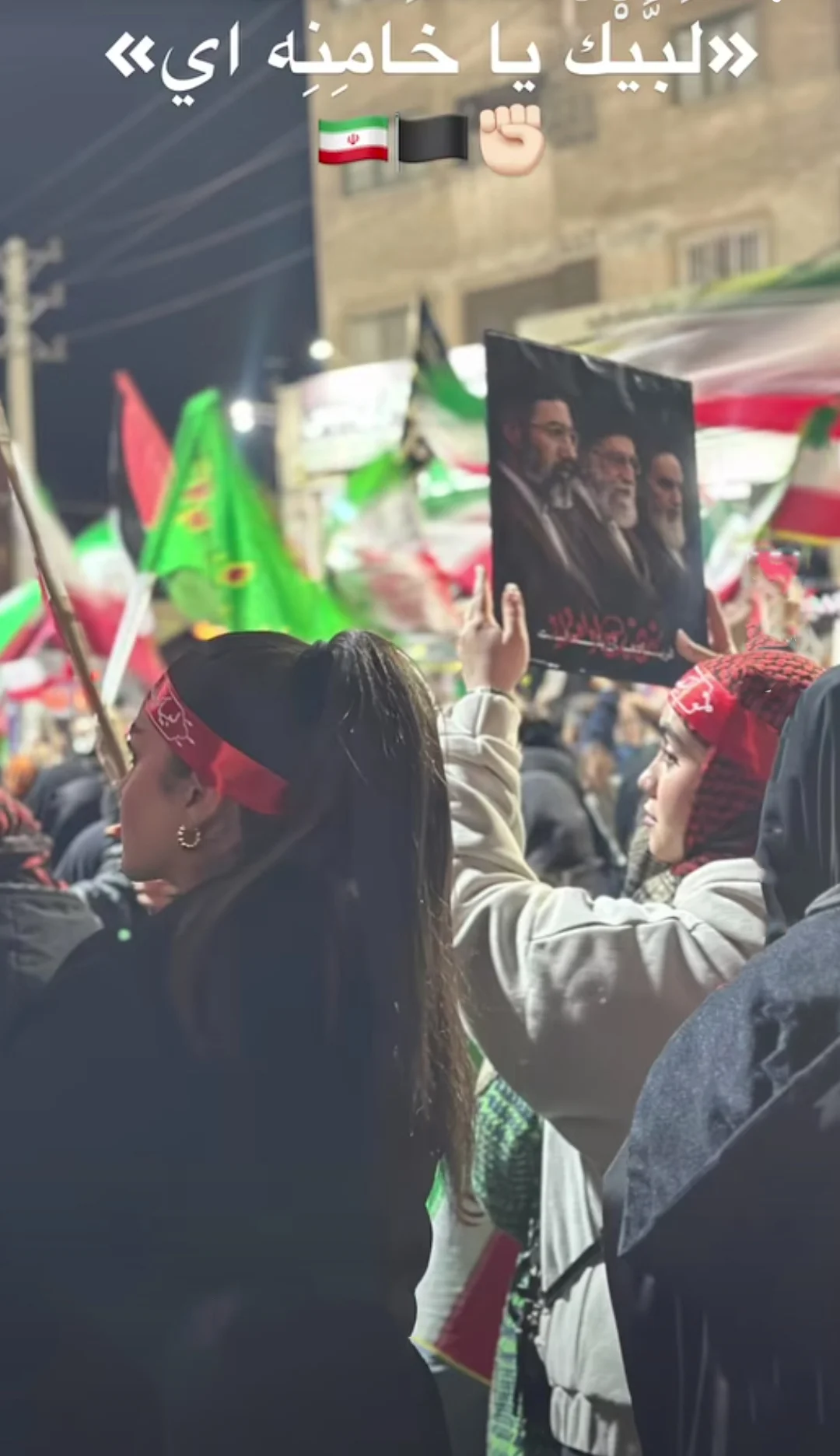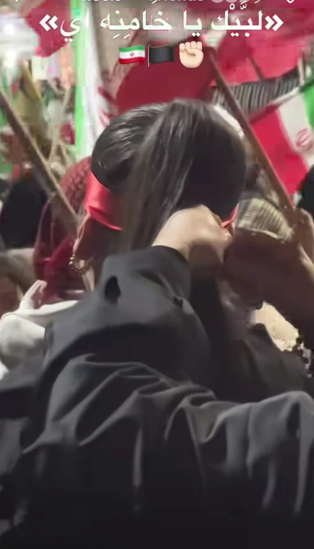 دختر چفیه به سر به مهر میگوید:« این اتفاق را که این شکلی بیرون آمدم، آقای سیدعلی خامنهای حسینی رقم زده. تو سخنرانیشون گفتن حتی دخترهایی که حجاب ندارن هم همهشون دخترای من هستن. کسی که ایرانو با جمهوری اسلامی قبول داره و نداره، بچه منه. این پرچمو میبینید؟