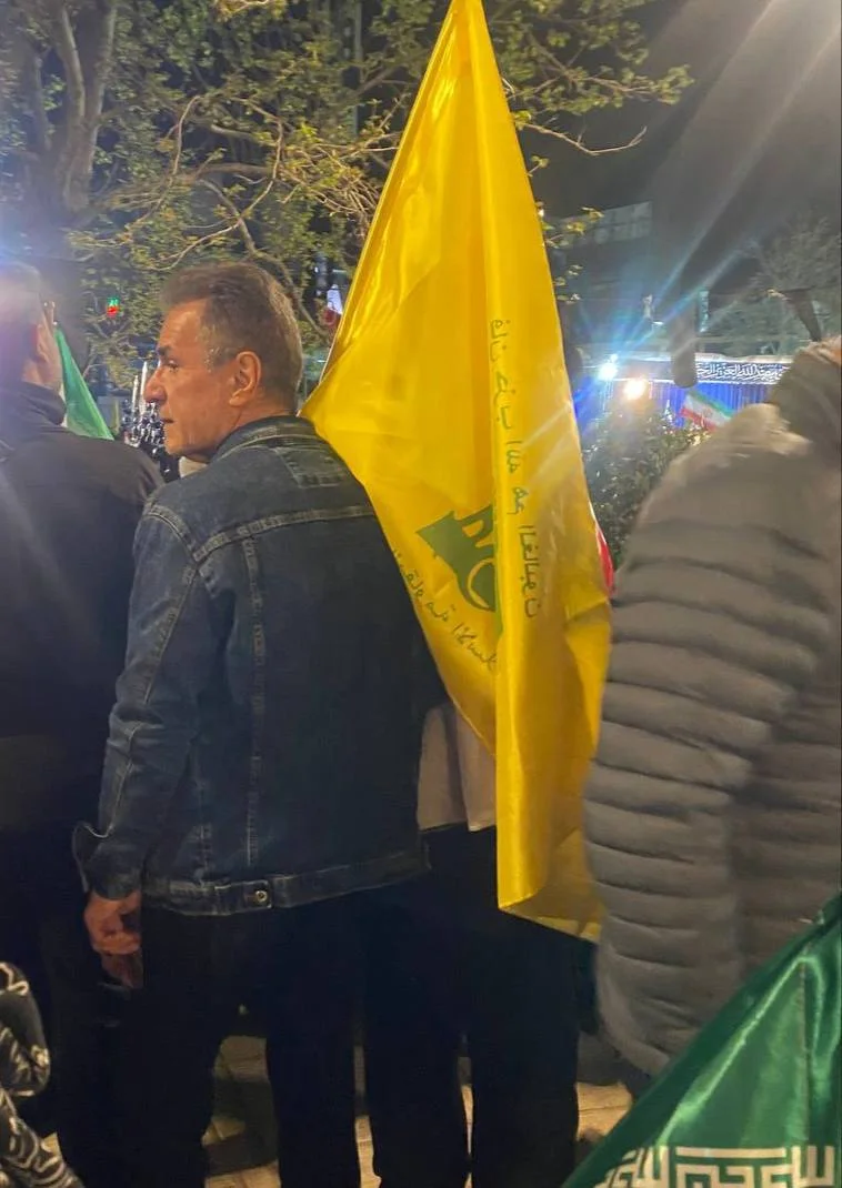 محمدحسن انصاریفرد؛ بازیکن و مدیرعامل سابق پرسپولیس و سرمربی اسبق تیم ملی فوتسال با پرچم حزبالله لبنان در اجتماع مردم در میدان تجریش حضور پیدا کرد.