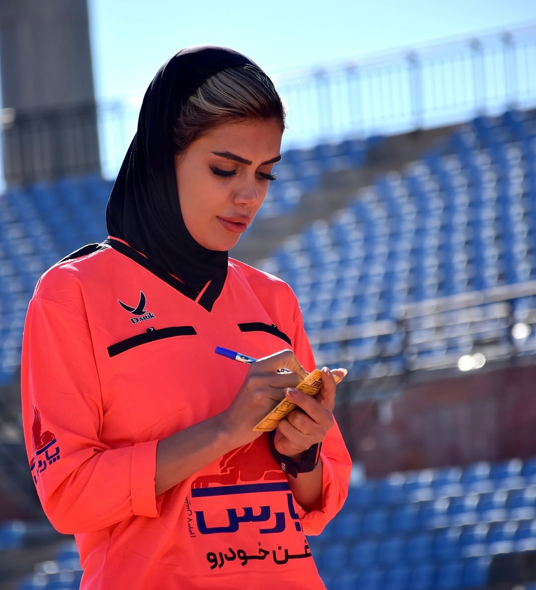 قاب دوم متعلق است به سیده سحر آراسته دختر ایلامی. خانم سحر هم در لیگ برتر سوت میزند و از داوران پرتلاش و خستگیناپذیر است. چیز زیادی از او نمیدانیم. در فرصتی دیگر بیشتر درباره او خواهیم نوشت.