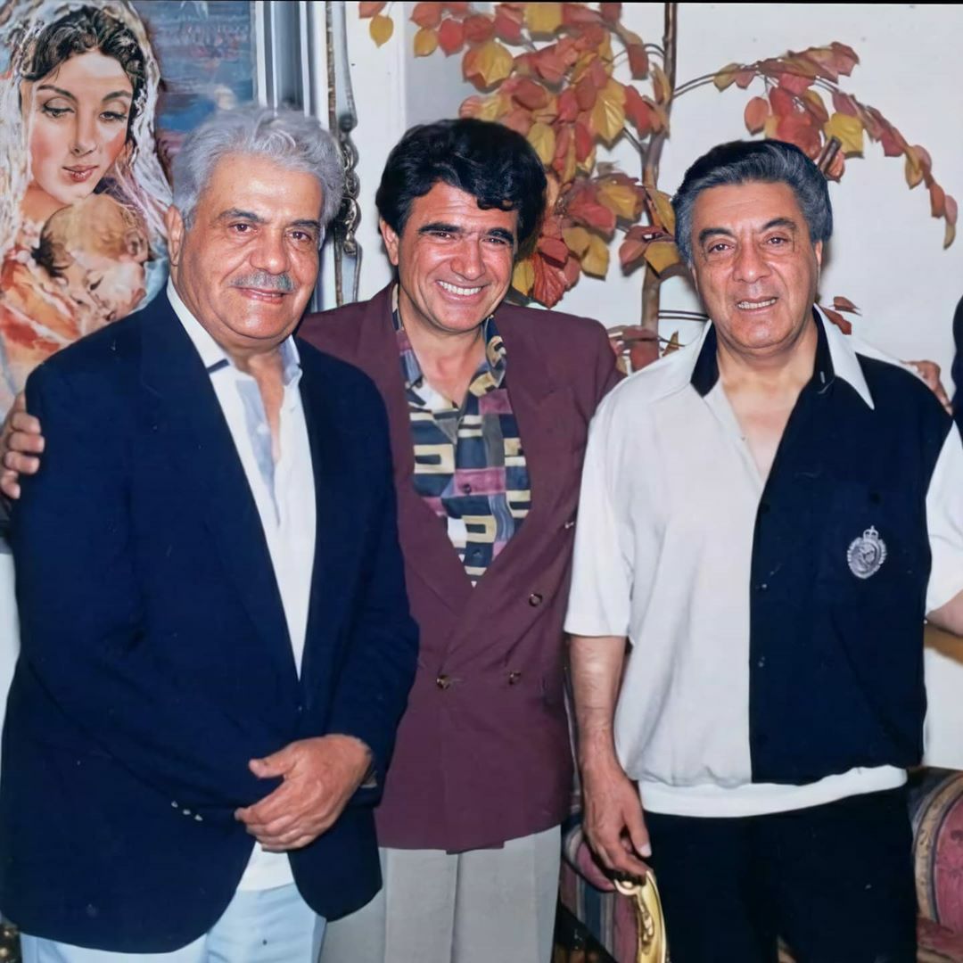 یک قاب دیدنی و سنگین از هنرمندان عرصه موسیقی و سینما؛ گلپا (علیاکبر گلپایگانی)، محمدرضا شجریان و نصرتالله وحدت. گلپا سال 1402 در 89 سالگی درگذشت. شجریان سال 1399 در 80 سالگی ترک دنیا کرد و نصرتالله وحدت دو روز قبل از شجریان در 95 سالگی به دیدار حق شتافت.