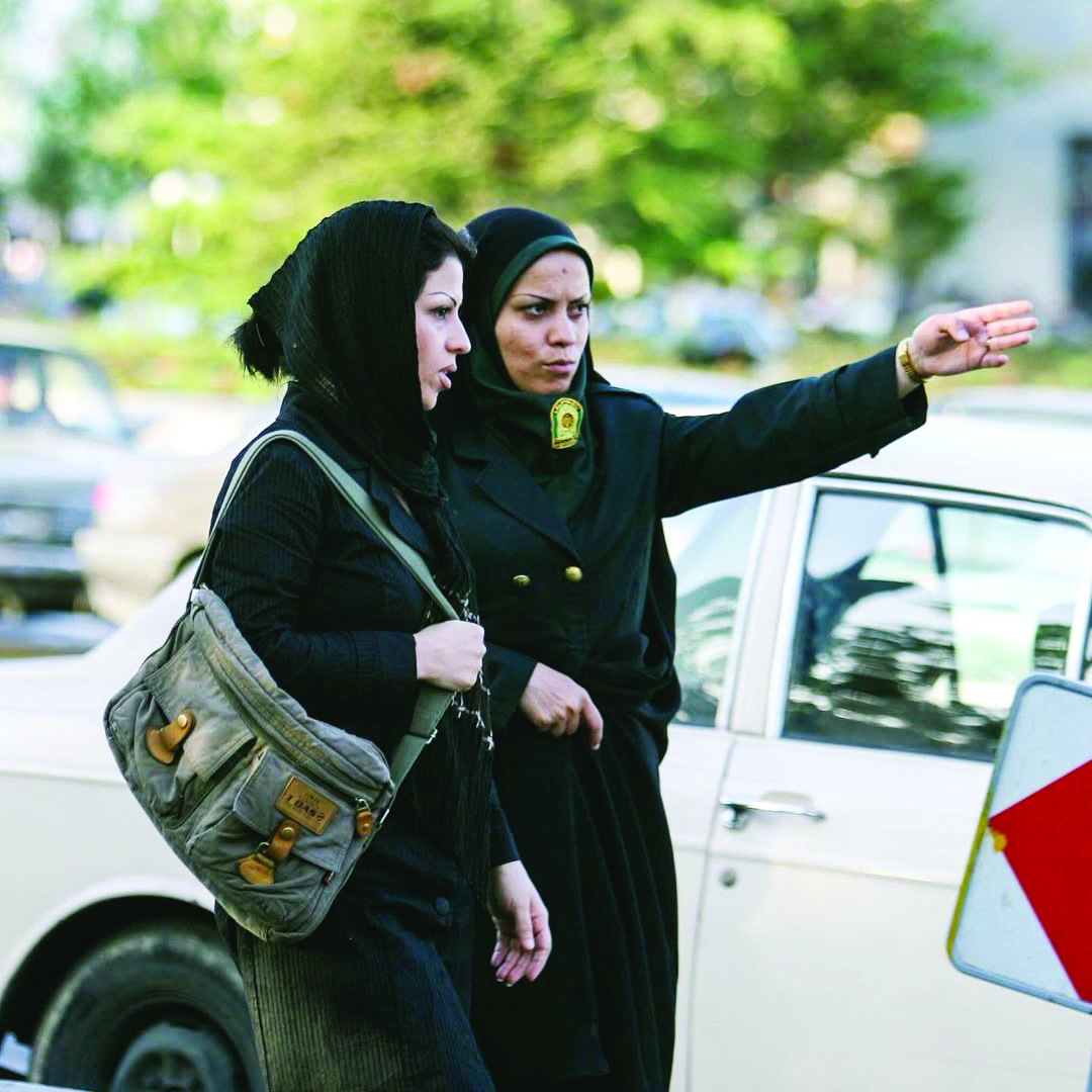 تذکر پلیس به حجاب یک زن جوان در تهران - بهار سال ۱۳۸۵