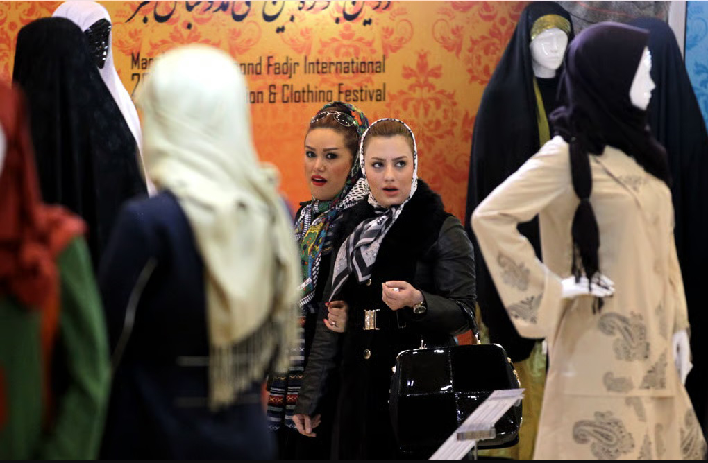 عکسی جالب از حضور دختران جوان در نمایشگاه مد اسلامی در تهران - سال 1386. عکس از عابدین طاهرکناره.