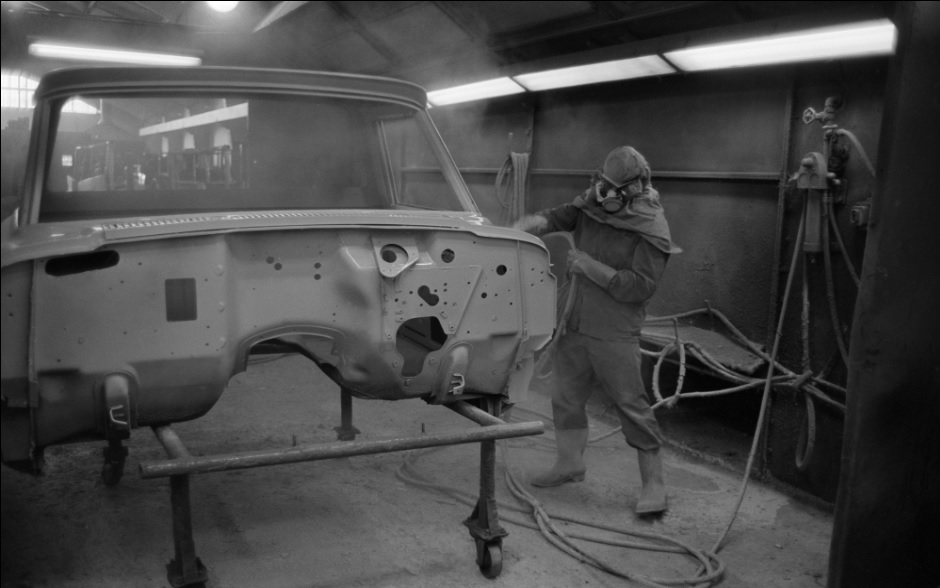 سالن رنگ ایرانخودرو؛ پیکان نوستالژیک در کارخانه ایرانخودروی کرج رنگآمیزی میشود؛ آن هم به با دست! - سال ۱۳۵۰