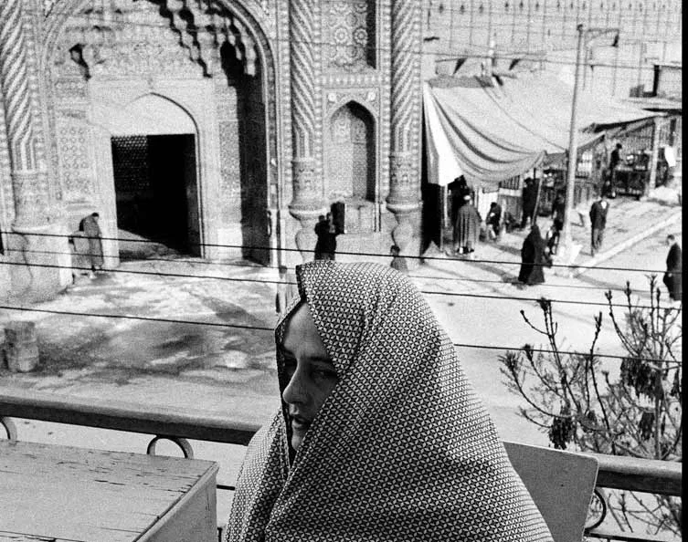 اینگه مورات عکاس آمریکایی - اتریشی همسر آرتور میلر، نویسنده مشهور آمریکایی را در سفر به ایران و قم میبینید. اینگه سال 1334 تصاویری از قم را ثبت کرده. او را در این عکس، در حال سر کردن چادر و قبل از حاضر شدن برای ورود به حرم حضرت معصومه(س) میبینید. به نظر میرسد این عکس بر بالکن منزلی باشد که زمانی در اختیار مرحوم دکتر شفاءالدوله بوده است.