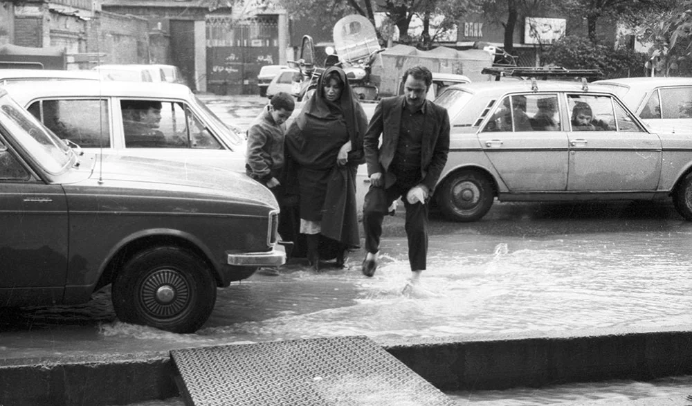 آبگرفتگی و جاری شدن سیل در یکی از خیابانهای تهران در سال 1365 را ببینید. عکس: ایرنا