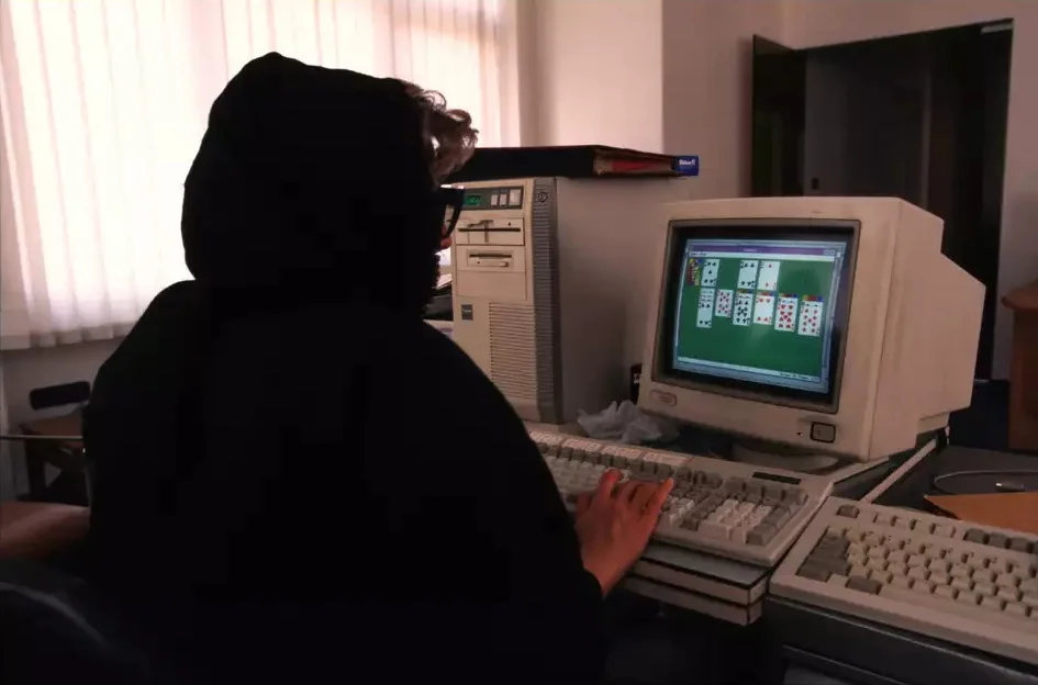 کارمند بازیگوش در یک شرکت خصوصی در تهران - سال 1375 . عکس از اسکات پترسون
