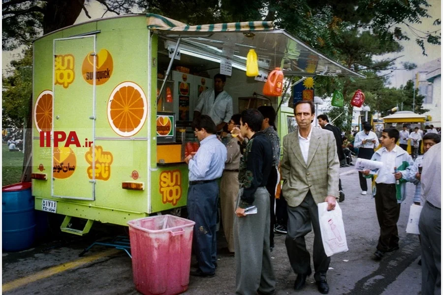ماشین فروش شربت سان کوئیک در تهران - سال 1375. آبادانیها با این شربت خاطرهها دارند. البته رفیق و همپایش شربت ویمتو را فراموش نکنیم.