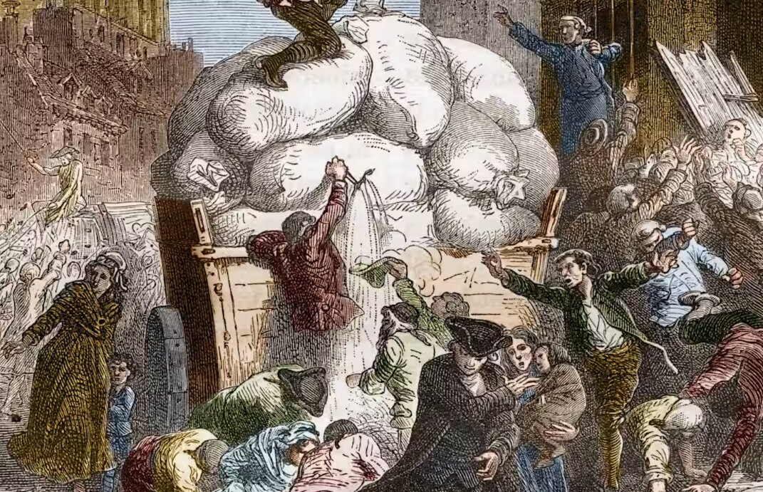 ولتر زمانی گفته بود که پاریسیها فقط به «اپرای کمیک و نان سفید» نیاز دارند. اما نان در تاریخ فرانسه ــ بهویژه در انقلاب فرانسه ــ نقشی تاریک نیز ایفا کرده است. یورش به دژ قرونوسطاییِ باستیل در چهاردهم ژوئیه ۱۷۸۹ در اصل با جستوجوی سلاح آغاز شد؛ و همچنین غله برای پخت نان.