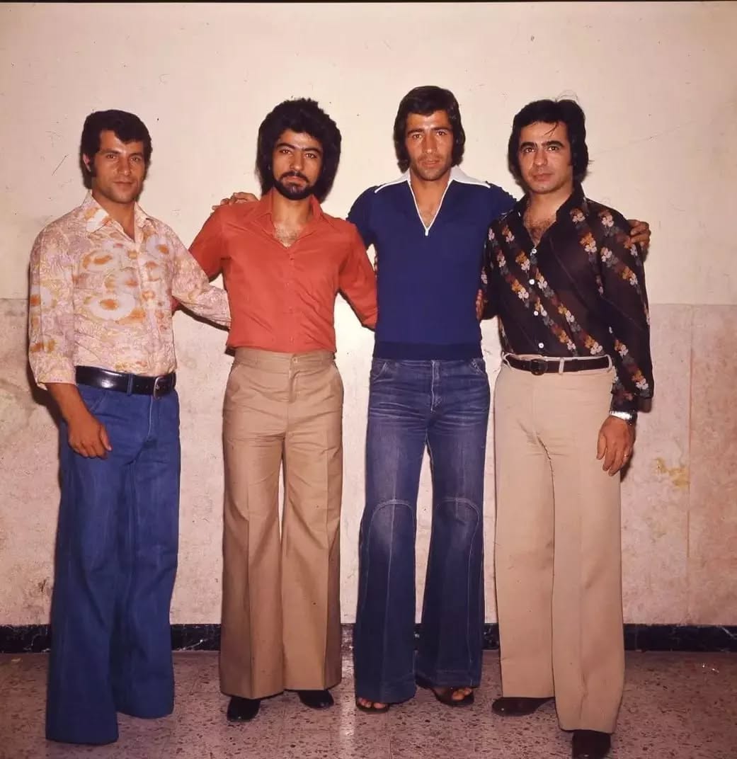 ستارههای سرخابی فوتبال پایتخت در کنار ستارههای موسیقی در دهه 50؛ عارف (عارفنیا) و ناصر حجازی و ستار (عبدالحسن ستارپور) و علی پروین - سال 1356