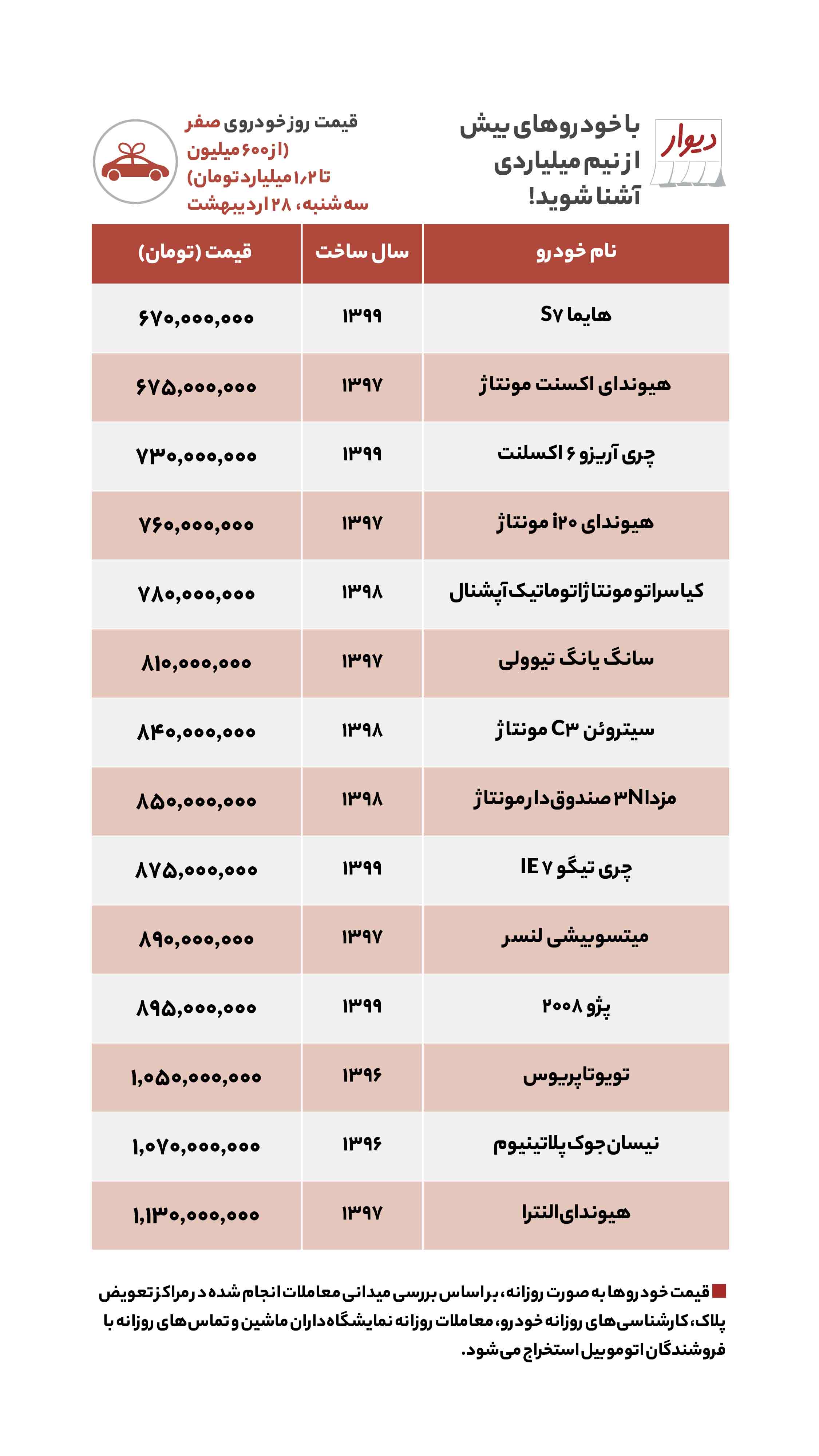 قیمت خودرو صفر در محدوده قیمت 600 میلیون تا 1/2 میلیارد تومان