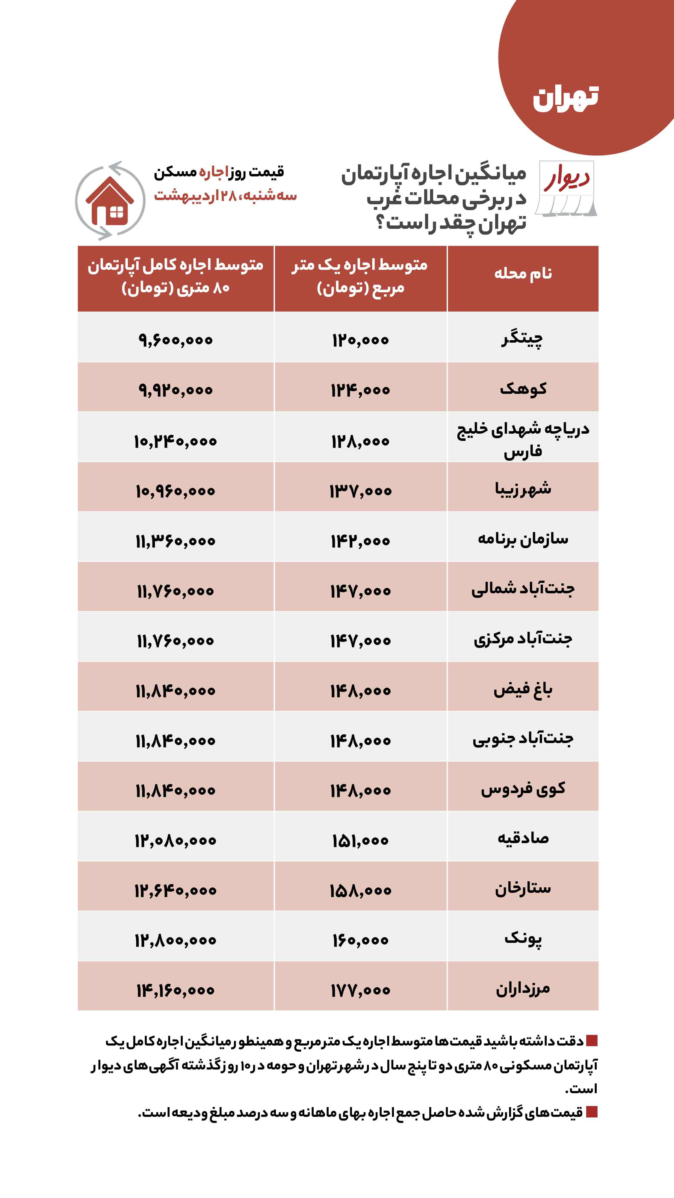 قیمت هر متر مربع آپارتمان در غرب تهران