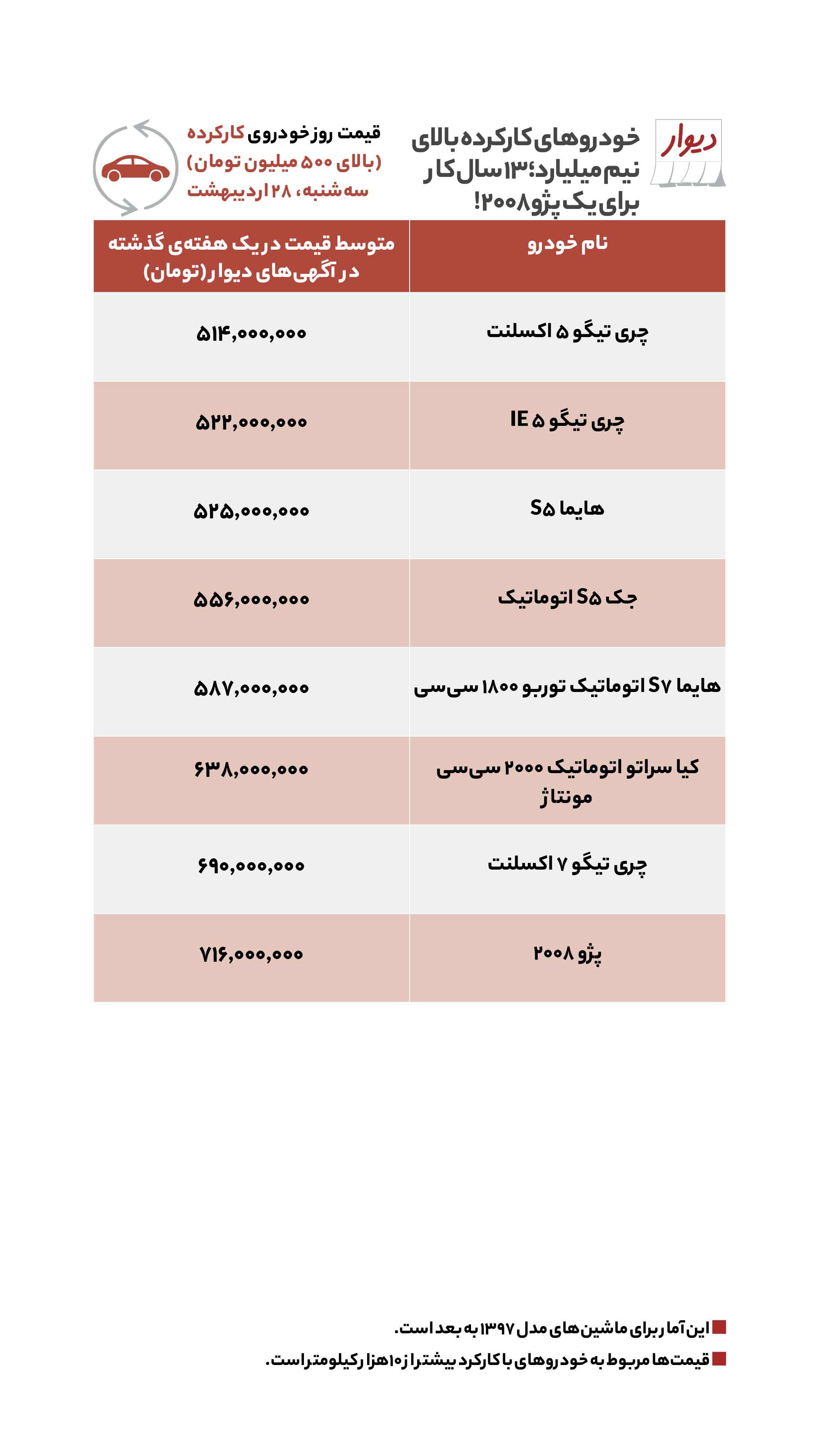 خودرو کارکرده با قیمت بیش از 500 میلیون تومان