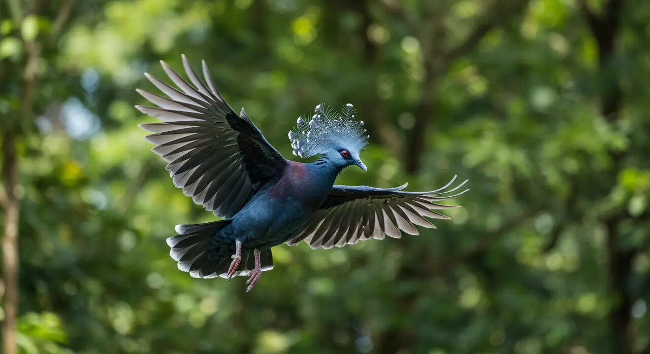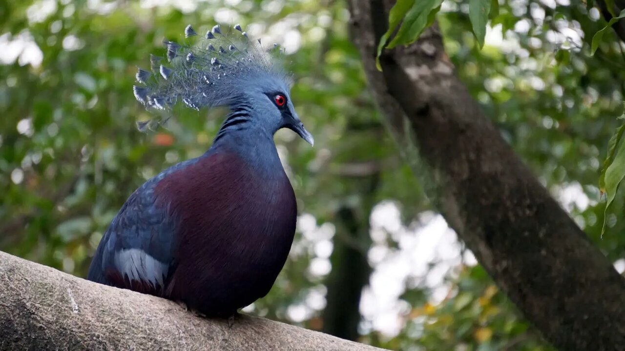کبوتر تاجدار ویکتوریا با پرهای آبی خاکستری، سینهای به رنگ ارغوانی تیره و چشمهای سرخ درخشان بهراحتی قابل شناسایی است. برجستهترین ویژگیاش تاجی از پرهای پیچیده و شبیه توری است که درست بالای سرش قرار دارد و نامش را هم از ملکه مشهور انگلستان وام گرفته است.