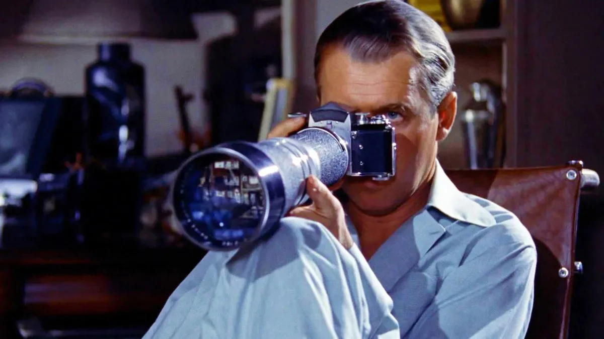 این فیلم که تنها در یک تک لوکیشن اتفاق میافتد روایت یک عکاس خبری است که حالا بخاطر شکستگی پایش خانهنشین شده و دوران بهبودیاش را طی میکند. او از شمهی خبرنگاریاش استفاده میکند و آپارتمانهای روبهروی پنجرهی اتاقاش را دید میزند. تا اینکه روایت وارد بحران میشود و خبرنگار قصه چیزی که نباید ببیند را میبیند. جیمز استوارت، گریس کلی و معمایی که هر لحظه پیچیدهتر میشود و در ساختار فیلم نفوذ میکند عناصری هستند که اثر را تبدیل به یکی از بهترین فیلمهای کارنامهی هیچکاک میکنند.