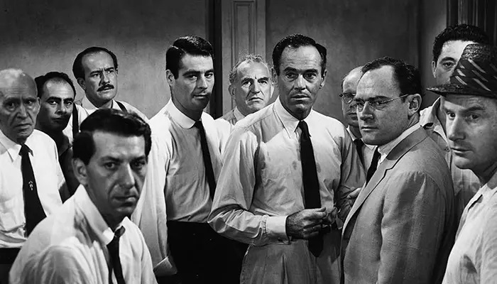 ۱۲ مرد خشمگین (۱۲ Angry Men) محصول سال ۱۹۵۷ به کارگردانی سیدنی لومت، یک اثر کلاسیک درباره عدالت اجتماعی است که تماماً در یک اتاق هیئت منصفه جریان دارد. داستان حول محور دوازده مرد عضو هیئت منصفه ای است که باید درباره سرنوشت یک نوجوان متهم به قتل تصمیم بگیرند.
