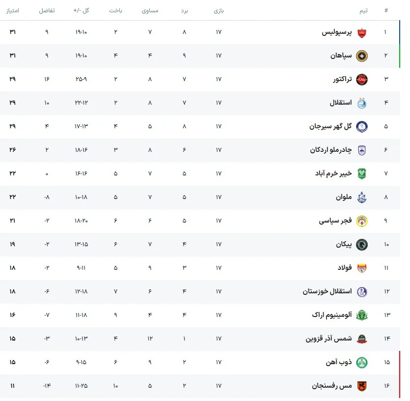 با این نتیجه، استقلال فرصت رسیدن به صدر جدول را از دست داد و در پایان هفته هفدهم، صدر جدول لیگ برتر همچنان با ۳۱ امتیاز در اختیار پرسپولیس باقی ماند.