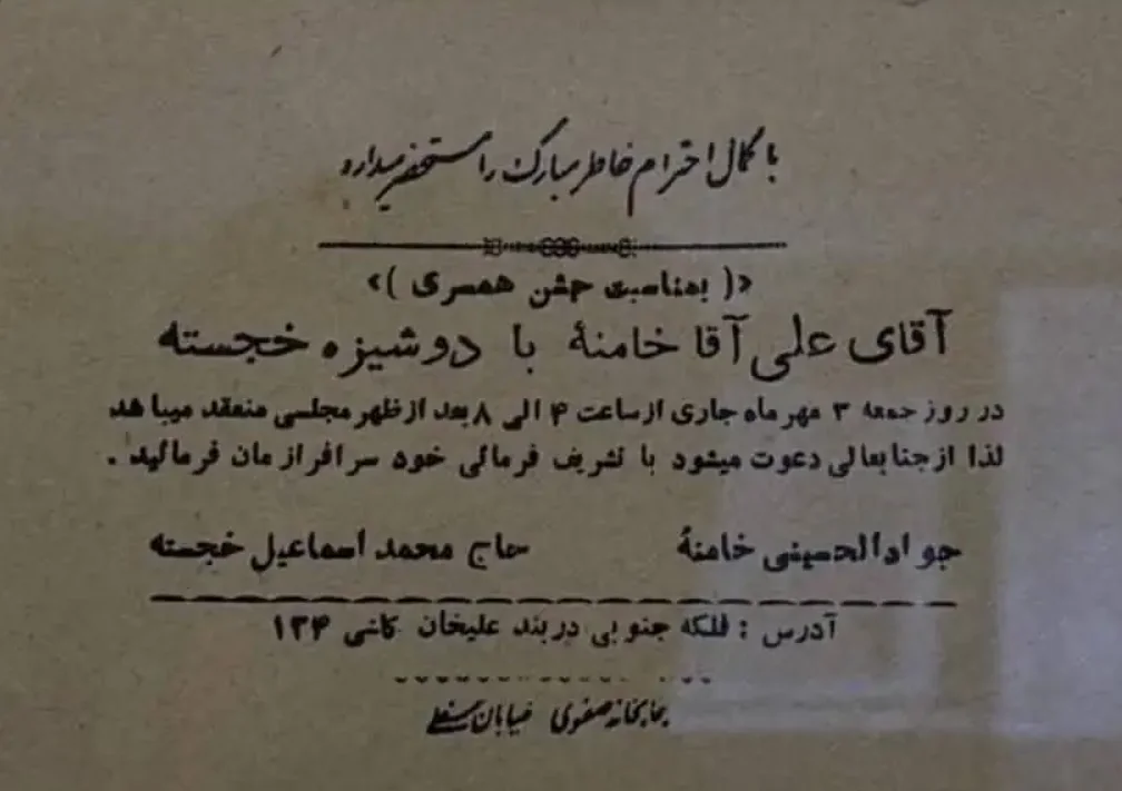 تصویری منتسب به کارت ساده مراسم ازدواج رهبر شهید انقلاب و همسرشان در فضای مجازی منتشر شده و توجه کاربران را جلب کرده است.