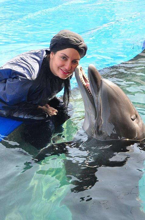 تصویری از مهناز افشار در حال بازی کردن با دلفین ها در استخر مشاهده کنید.