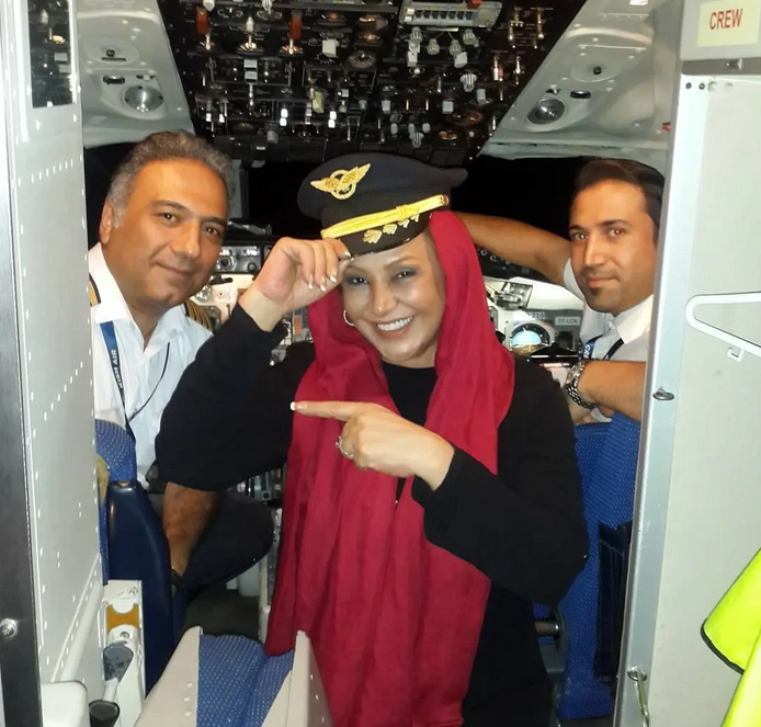 نسرین مقانلو با کلاه خلبانی و در کابین هواپیما؛ سال 95 را ببییند.