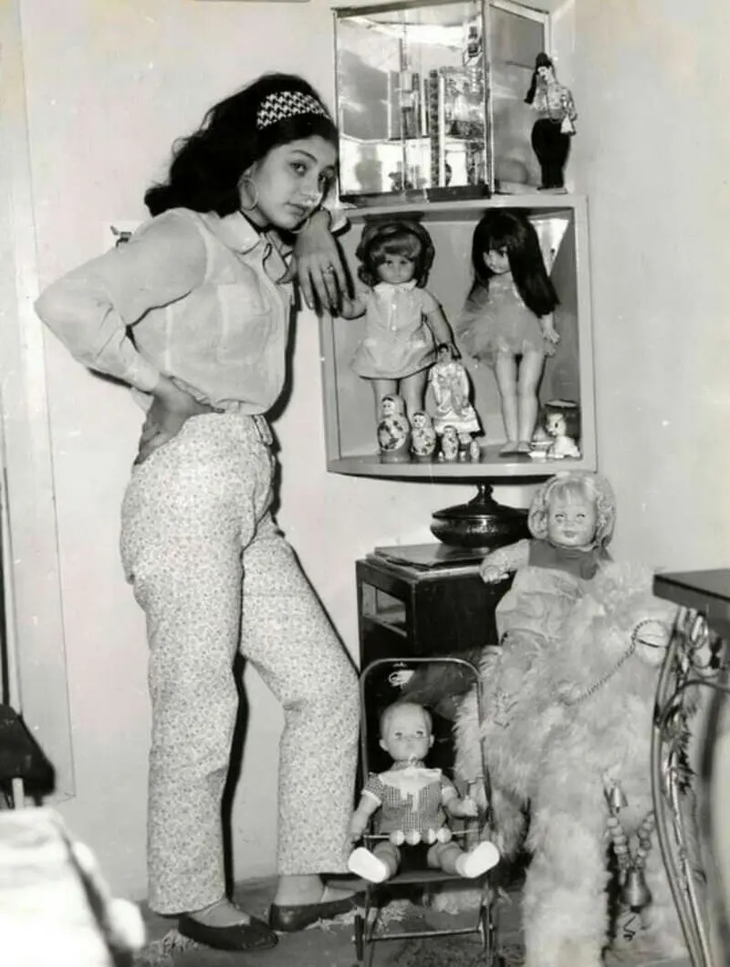 در این عکس قدیمی، گوگوش در دوران کودکیاش کنار مجموعهای از عروسکهای محبوبش دیده میشود. اتاق طراحی ساده دارد؛ با میزی پر از عروسکهای مختلف که نشان از ذوق و سلیقهی کودکانهی اوست.