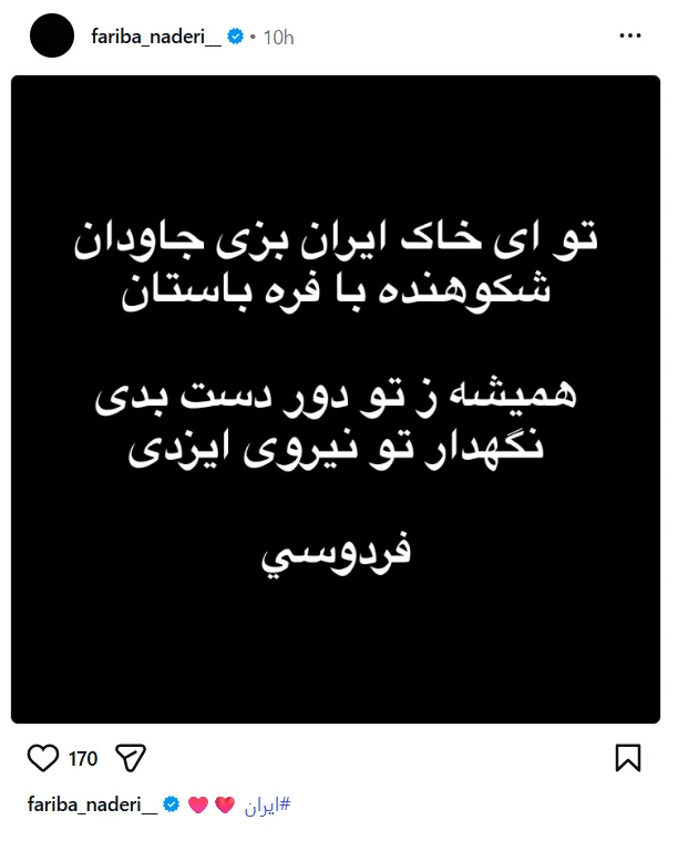 او در این پست که با استقبال کاربران مواجه شد، این ابیات را منتشر کرد: