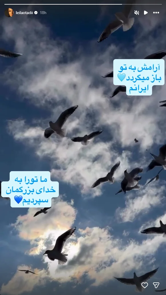 این بازیگر که پیشتر نیز با انتشار پیامهای وطنی و همدردی با مردم ایران در روزهای سخت جنگ شناخته میشود، این بار با زبانی آرام و امیدبخش، سعی کرد تا هم به خانوادههای داغدار تسلی بگوید و هم به همه ایرانیان یادآوری کند که آرامش به این سرزمین بازخواهد گشت.
