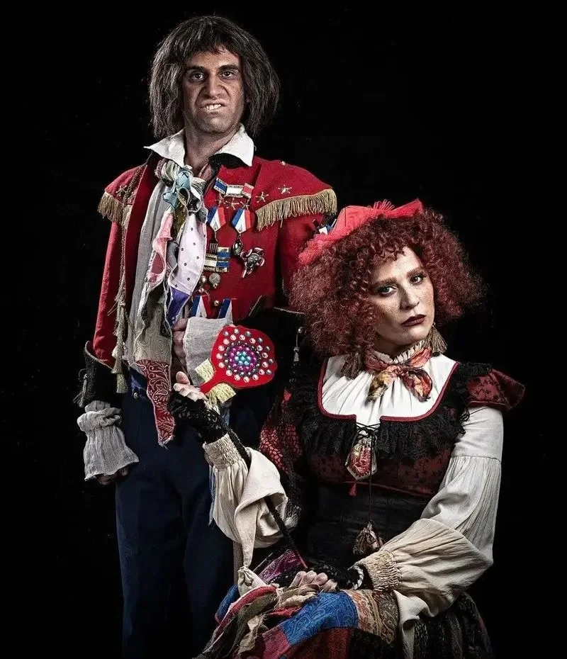 تصویری از گریم متفاوت این دو بازیگر در این تئاتر را ملاحظه می فرمایید.