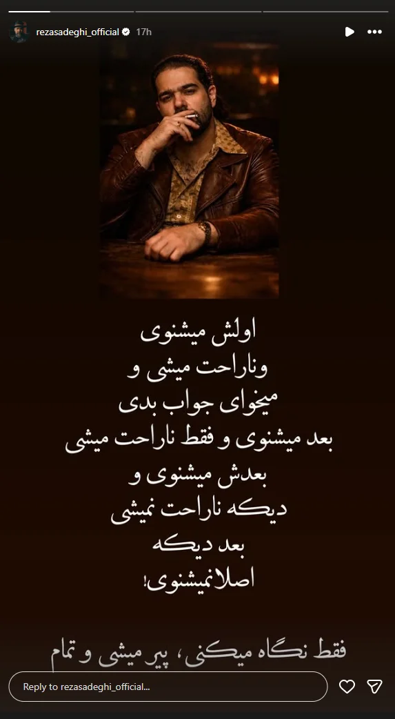 رضا صادقی، خواننده و هنرمند محبوب پاپ، با انتشار استوری در اینستاگرام، متنی احساسی درباره شنیدن حرفها، ناراحت شدن، نادیده گرفتن و در نهایت پیر شدن منتشر کرد.