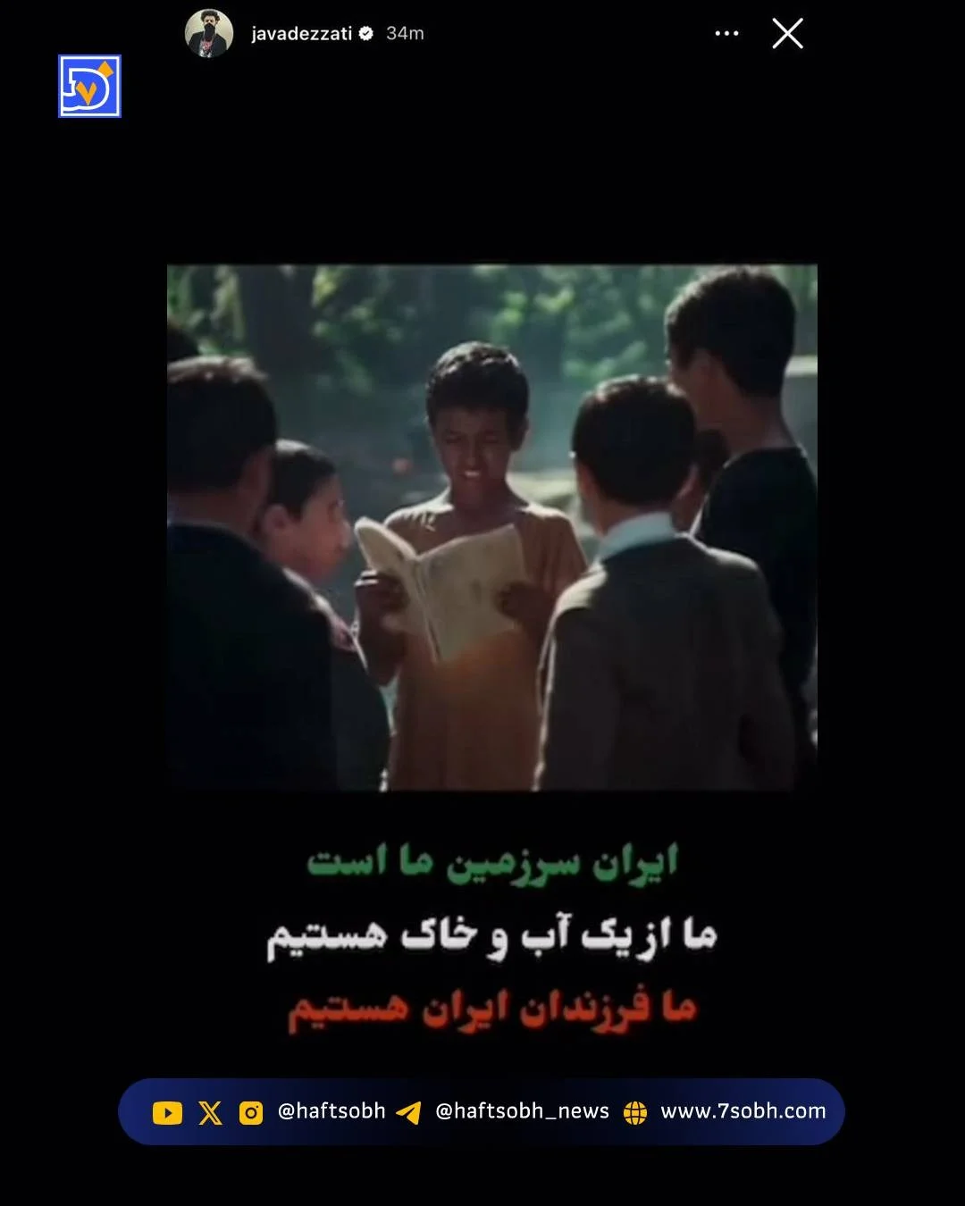 به گزارش هفت صبح، جواد عزتی این بازیگر سینما، در واکنش به حملات دشمن صهیونی به وطنمان سکانسی از فیلم باشو غریبه کوچک را بازنشر کرد و نوشت: ایران سرزمین ما است ما از یک آب و خاک هستیم ما فرزندان ایران هستیم.