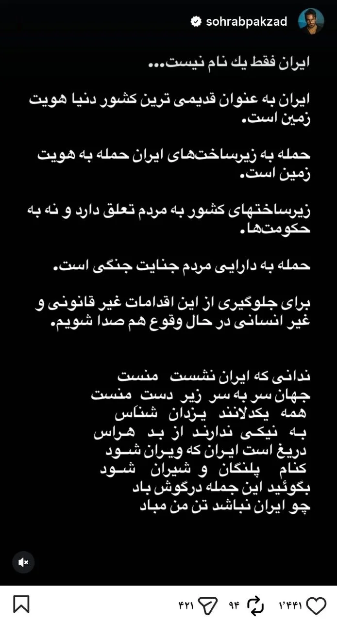 صفحه اصلی•وب گردیتاریخ خبر: ۱۸ فروردین ۱۴۰۵ - ۲۳:۴۰نگاه روز | استوری سهراب پاکزاد، خواننده پاپ در مورد ایرانبه گزارش هفت صبح استوری سهراب پاکزاد، خواننده پاپ در مورد ایران را در ادامه می بینید. مهم ترین اخبارعکس| قاب خاطره انگیز شقایق فراهانی، خاطره اسدی و هانیه توسلیپرداخت یارانه ۲ میلیون تومانی از ابتدای فروردین ۱۴۰۵/ این افراد بخوانندمعرفی فیلم های سینمایی و تلویزیونی روز شهادت امام جعفر صادقآخرین قیمت طلا و سکه امروز دوشنبه 24 فروردین 1405فوری/ اعلام آمادهباش کامل در یک استان کشور + جزئیاتمداحی محمد حسین پویانفر "شیعه خانه بقیه الله"تغییر چهرۀ «بانو سویا، زن جومونگ» بعد از 19 سال/ خانم بازیگر در 44 سالگی هم جوان است!!خوانندگیخوانندگی ایرانیخوانندهخواننده ایرانیخواننده پاپسهراب پاکزادسینما و تلویزیوننگاه روزکپی لینک کوتاهما را در شبکههای اجتماعی دنبال کنیدآپاراتاخبار مرتبطعلی زندوکیلی روی خطوط ریلی از وطن خواند + ویدئوعکس| واکنش میثم ابراهیمی در پی جنایات اخیر آمریکا و اسرائیلاجرای طنز حامد بهداد با تقلید از خوانندگی فرزاد فرزین/ ترکوند همه رو!! + ویدیوبازیگری و خوانندگی کامران تفتی، شوهر نمونه متین ستوده/ خوش به حال عروس خانم!! + ویدیوگذشته سخت عارف عارف کیا خواننده قدیمی + تصاویری از همسر سابق و دخترشبدون دیدگاه.
