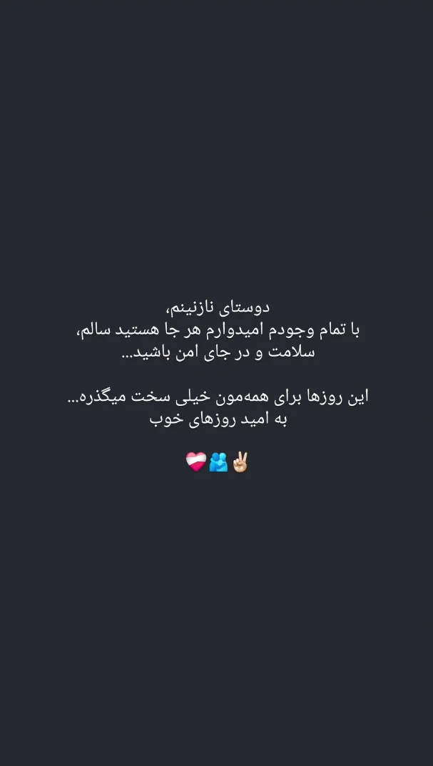 «دوستای نازنینم با تمام وجودم امیدوارم هر جا هستید سالم سلامت و در جای امن باشید.