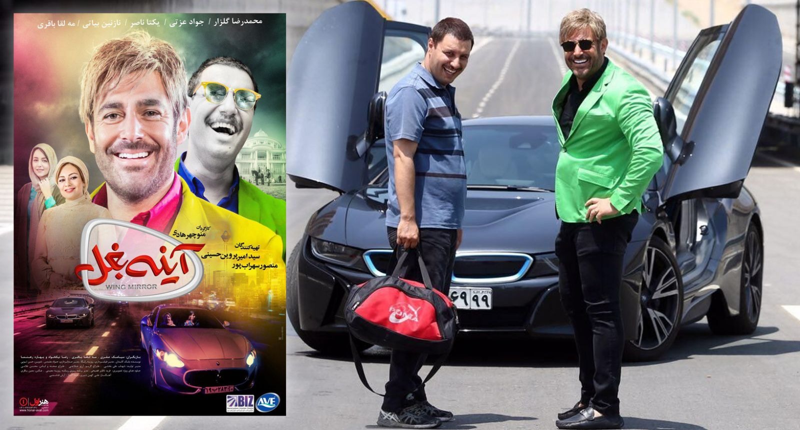 آینه بغل سینمایی طنز ایرانی دیگری از منوچهر هادی است که در این لیست حضور دارد. آینه بغل با حضور بازیگرانی چون محمدرضا گلزار و جواد عزتی اکران بسیار موفقی داشت و با اقبال خوب تماشاگران مواجه شد.
