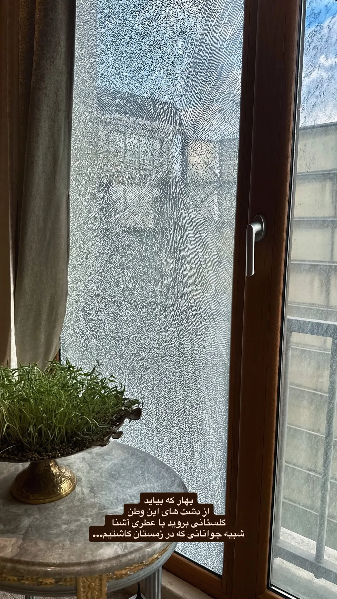 به گزارش هفت صبح، در میان هیاهوی بمبارانهای شبانه و صدای شکستن شیشههایی که امنیت شکننده خانهها را نشانه رفتهاند، گاهی یک استوری کوتاه میتواند روایتی عمیقتر از هر خبری باشد. آناشید حسینی، طراح لباس و چهره شناختهشده فضای مجازی که این روزها خانهاش در تیررس حملات رژیم صهیونیستی قرار گرفته، با انتشار تصویری از پنجره شکسته منزلش، نه از ترس، که از امید نوشت. او که خود را در خط مقدم بیخبری جنگ یافته بود، با زبانی شاعرانه، از بهاری گفت که از دل این زمستان خونین خواهد رویید؛ بهاری با عطر جوانانی که امروز در خاک وطن کاشته میشوند.
